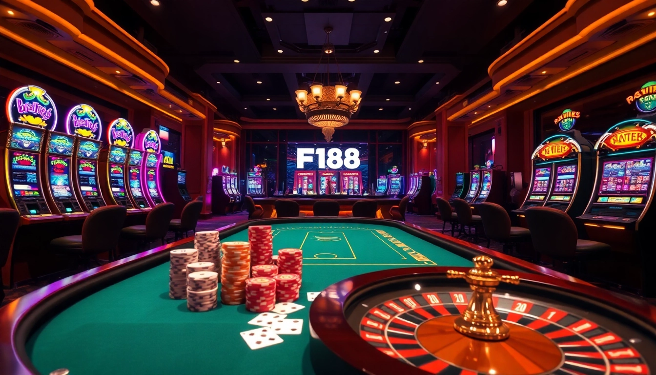 Experience exhilarating gameplay at F168 with vibrant casino tables and thrilling slot machines.